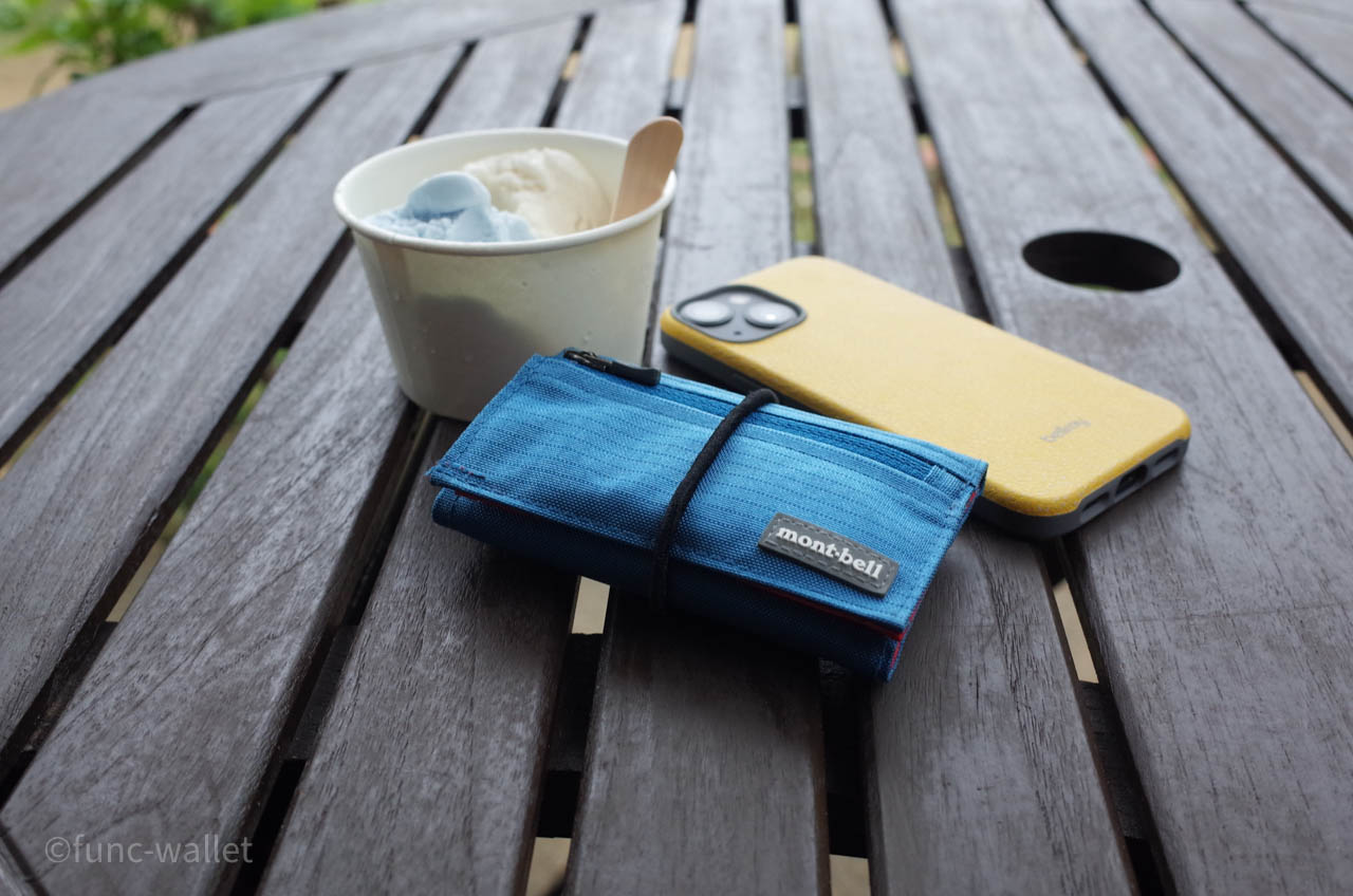 そこで、軽くて小さくて、革製ではない財布が最適です。モンベルのトレールワレットです。