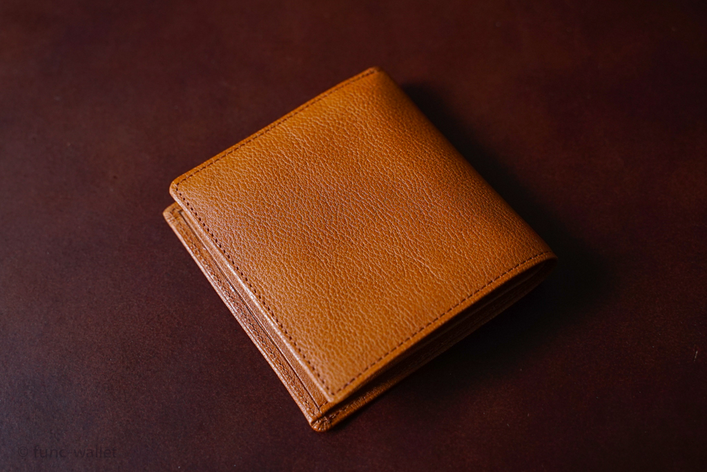 本作は「二つ折り財布」にカテゴライズされる財布。オーソドックスな二つ折り財布とサイズは同じくらいですね。