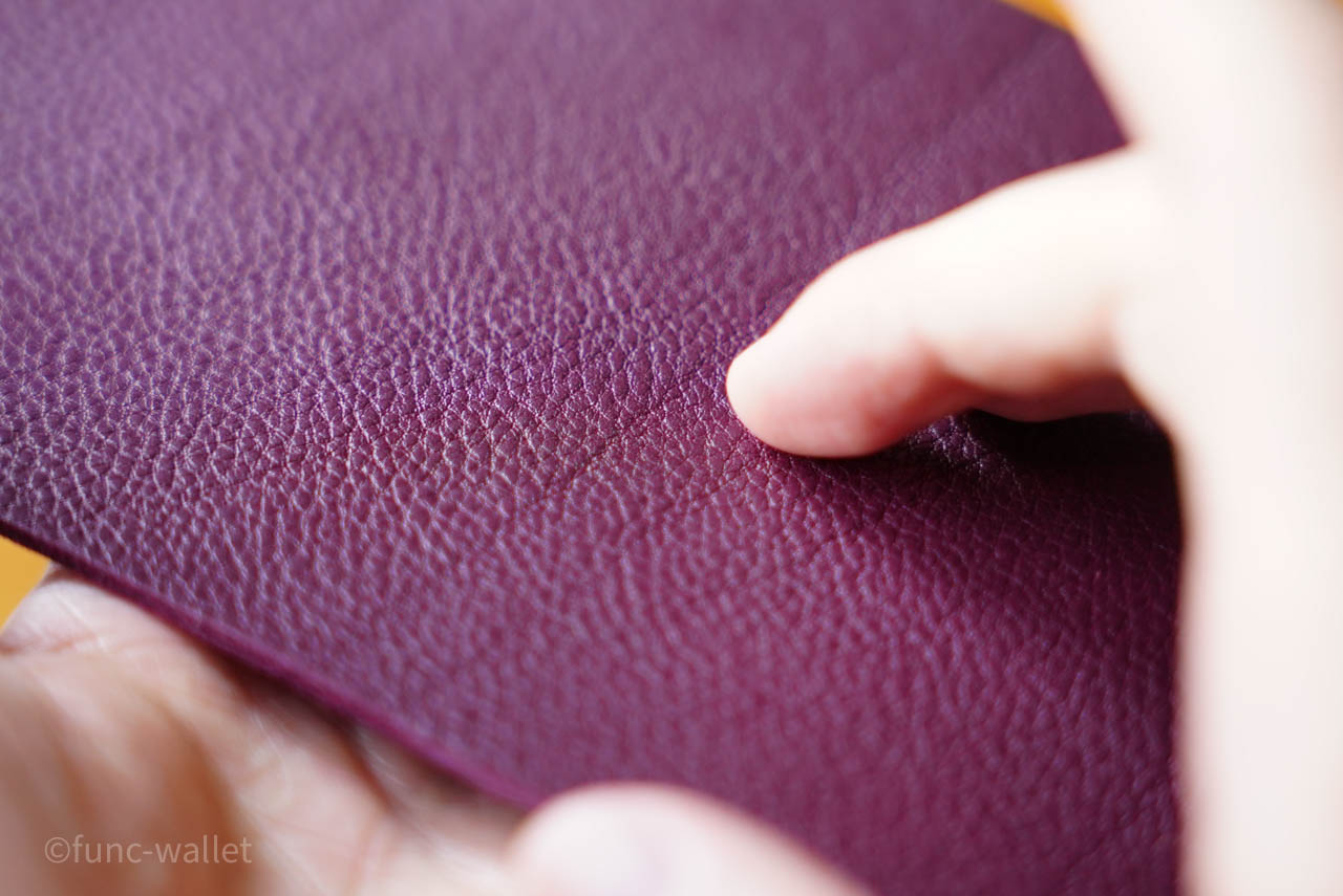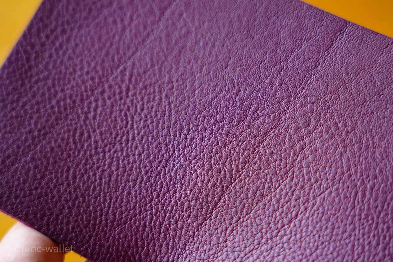 ミネルバボックスと、ほぼ同じ質感、触り心地。柔らかな質感で、色・ツヤが劇的に変化するエイジングを楽しめます。ただ、他の革と比べてエイジングがかなり早いです(1ヶ月で体感できるくらい)。じっくりと変化を味わいたいなら避けたほうがいいかもしれません。