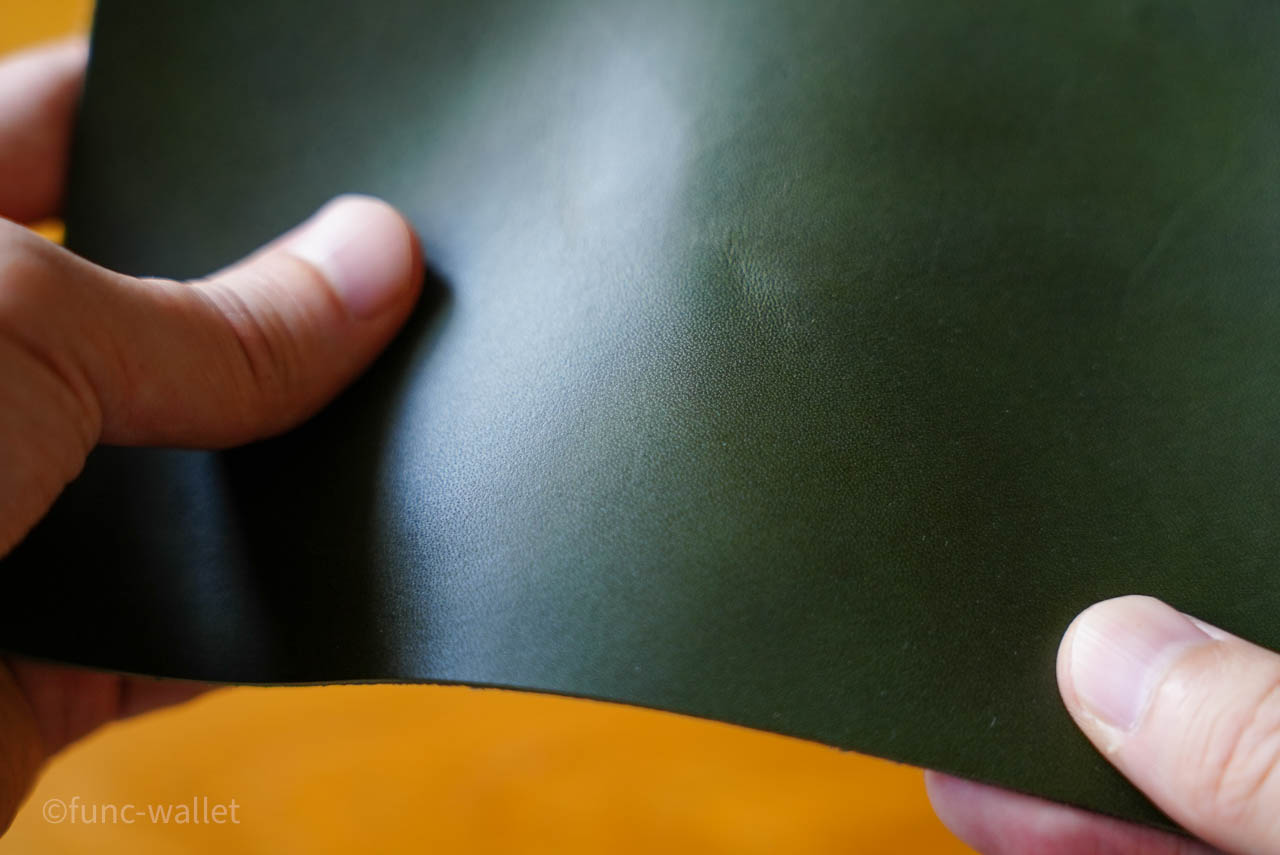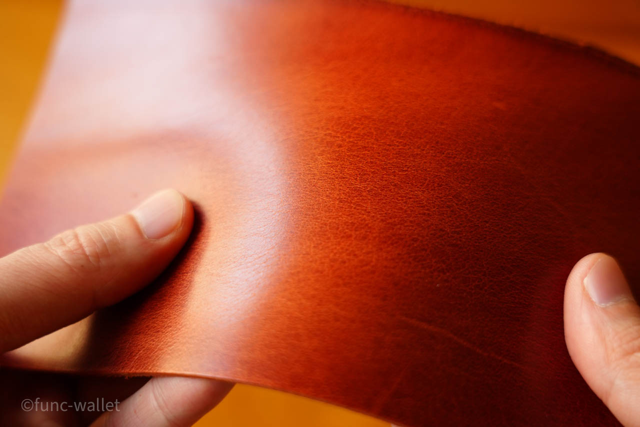 ハリがありつつ、もっちりとした質感があります。オイルの保有量が新喜皮革より多いのでしょうね。